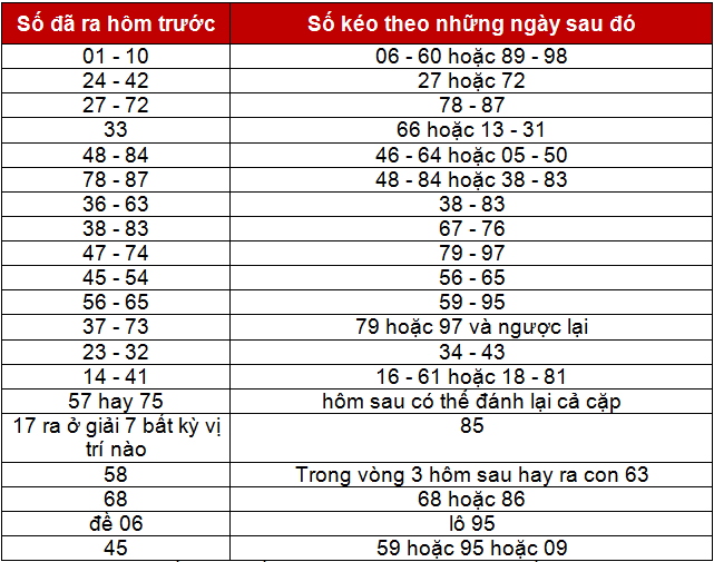 Quy luật là 2 con số đầu và đuôi trong một giải đặc biệt có dấu hiệu ra liên tiếp trong 3 ngày sau đó, kéo theo một con số nào đó cố định nữa. Ví dụ: Giải đặc biệt hôm nay là 779124, đầu 77 và đuôi 24 ra thêm liên tiếp 3 ngày sau đó kèm theo số 53. Bạn có thể nuôi con 53 trong 3 ngày sau đó.